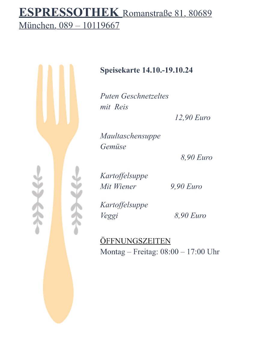 Espressothek Food Shop in München’s Romanstraße 81 offers a warm, inviting refuge perfect for coffee lovers and casual diners alike. The menu highlights quality coffee from Meran, praised consistently for its rich and comforting flavor, making it ideal for long study sessions or relaxed conversations. Beyond exceptional brews, the café presents a thoughtful selection of loose leaf teas, expertly brewed to perfection, and delightful pastries such as croissants with marzipan that add a sweet touch to the experience.